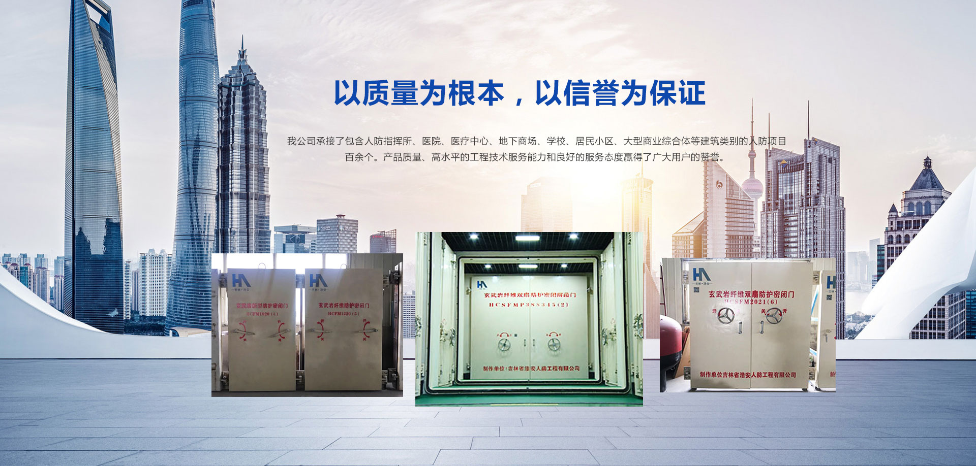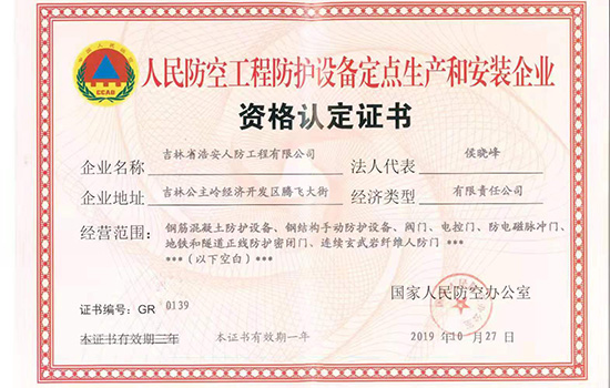 吉林省浩安人防工程有限公司是經(jīng)國家人民防空辦公室批準(zhǔn)成立的人防工程防護(hù)設(shè)備定點(diǎn)生產(chǎn)廠,2019年認(rèn)定為國家級高新技術(shù)企業(yè)。本廠擁有現(xiàn)代化的廠房及先進(jìn)的生產(chǎn)設(shè)備,集生產(chǎn)制造、質(zhì)量控制、銷售服務(wù)為一體的區(qū)域性行業(yè)廠。公司座落在吉林省公主嶺經(jīng)濟(jì)開發(fā)區(qū),占地面積達(dá)10000平方米,辦公樓1200平方米,廠房建筑面積達(dá)6000平方米以上,注冊資金1000萬元,企業(yè)的技術(shù)力量雄厚,其中防護(hù)工程師,高級工程師及中高級專業(yè)技術(shù)人員占30%。青海分公司2018年10月15日成立,于當(dāng)年11月26日通過 青海人民防空辦公室備案公示。 本廠經(jīng)營的主要產(chǎn)品:連續(xù)玄武巖纖維新型人防防護(hù)門、鋼結(jié)構(gòu)人防防護(hù)門、鋼筋混凝土人防防護(hù)門以及各種型號的通風(fēng)設(shè)備和防化設(shè)備。本廠生產(chǎn)設(shè)備齊全,擁有雄厚的生產(chǎn)能力和技術(shù)水平,并嚴(yán)格按照國家相關(guān)標(biāo)準(zhǔn)生產(chǎn)和安裝。2015年5月15日正式開業(yè)至今,承接吉林省人防工程項(xiàng)目上百項(xiàng),總施工面積超過百萬平方米。工程項(xiàng)目包含人防指揮所、醫(yī)院、地下商場、商場、學(xué)